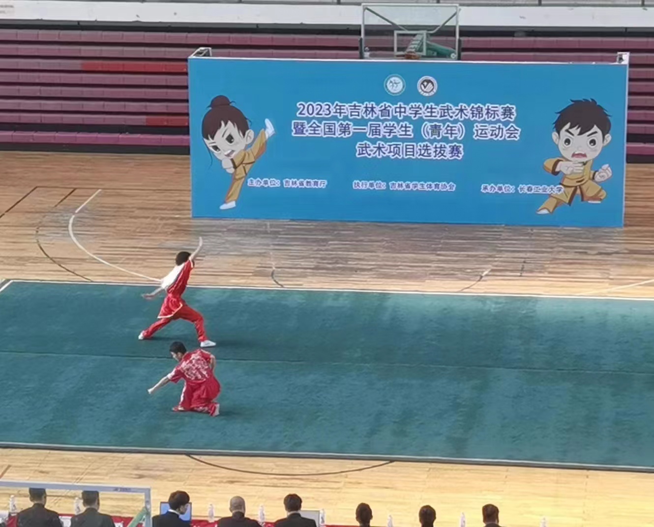 本次比赛由吉林省教育厅主办,吉林省学生体育协会执行,我校承办。共有东北师范大学等33所高校的38支队伍分别参加阳光组、菁英组和高职高专组的比赛。186名运动员在初级三路长拳、二十四式太极拳、初级刀术、初级剑术四个项目中展开激烈角逐。
