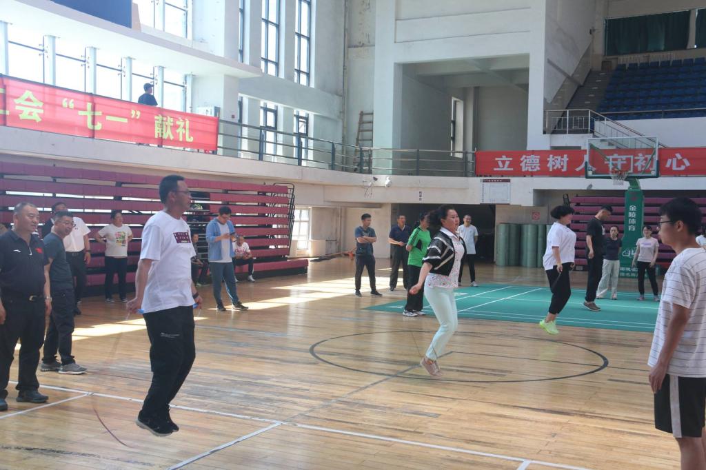 6月23日,bv1946伟德国际始于英国在南湖校区体育馆三楼篮球场举办了庆“七一”教职工岗位体能大练兵活动。教研部分工会为为隆重纪念中国共产党成立100周年,主动营造教研部教职工爱岗敬业的优良氛围,增进教研部教职工交流,增强团队凝聚力,更好的展现教职工精神面貌,教研部分工会精心组织策划了本次活动。活动设置了跳绳、飞镖比赛。