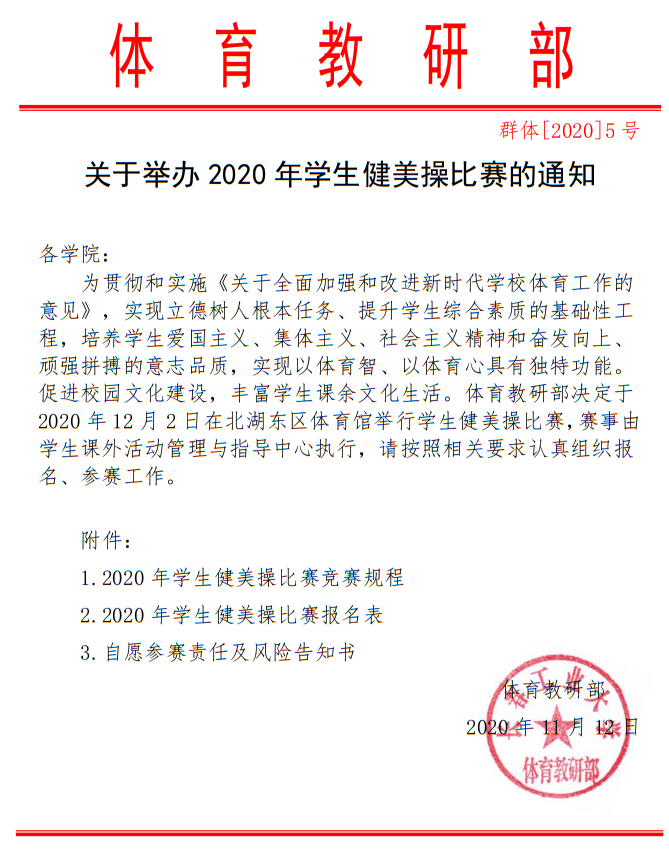 关于举办2020年学生健美操比赛的通知