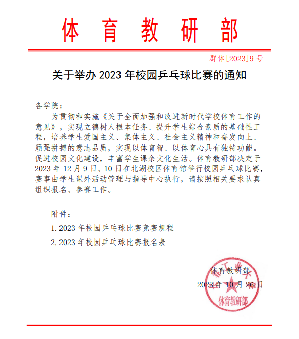 关于举办2023年校园乒乓球比赛的通知