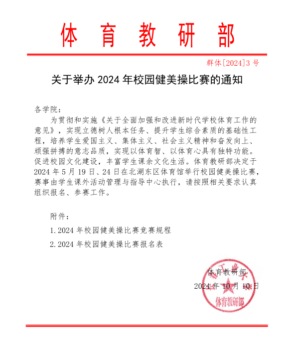 关于举办2024年校园健美操(街舞)联赛的通知