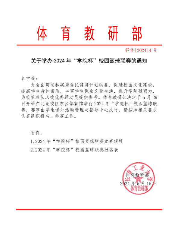 关于举办2024年“学院杯”校园篮球联赛的通知