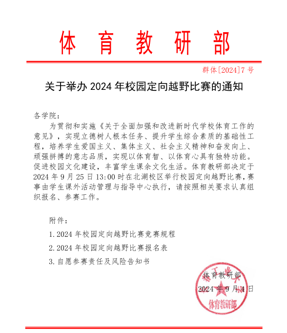 关于举办2024年校园定向越野比赛的通知