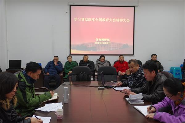 王亚坤对贯彻落实全国教育大会精神提出四点意见。一是继续深入学习习近平总书记关于教育改革发展的系列重要讲话精神。二是认真组织开展好教研部教育思想大学习、大讨论活动。三是坚持把大会精神作为我们谋划教研部今后工作的基本遵循。四是突出重点,全面加强师德师风建设。