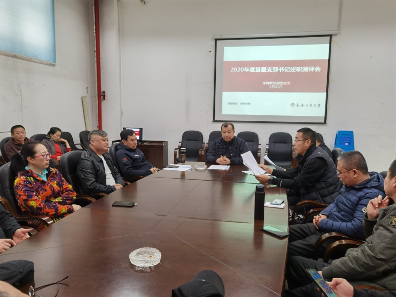 本网讯(通讯员 魏晓磊)3月31 日上午bv1946伟德国际始于英国党总支在bv1946伟德国际始于英国三楼党员活动室召开2020年度基层支部书记抓党建述职测评会,教研部班子成员、党员代表、教师代表出席会议,会议由杨继华主任主持。